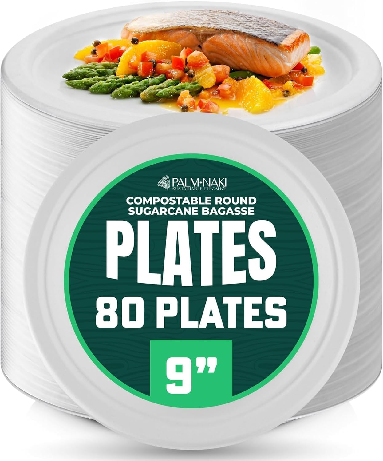 Elevate every meal with Palm Naki’s Bagasse Plates, crafted from a premium blend of sugarcane bagasse and bamboo pulp. Designed as a tree-free alternative to traditional disposable dinnerware, these sturdy paper plates help reduce deforestation while offering a durable and stylish solution for everyday dining, catering, or special events. Strong, reliable, and waste-conscious, they bring convenience without compromise. Built to handle everything from hearty entrees to light snacks, these disposable party plates resist bending, leaking, and soaking through. Their sturdy construction ensures a mess-free dining experience, while their microwave- and freezer-safe design allows for easy reheating and storage. Whether serving hot or cold foods, these white disposable plates maintain their integrity and performance. Free from PFAS, bleach, dyes, and artificial coatings, these plates provide a food-safe surface that keeps every meal pure and natural. This case of 960 (12 x 80-pack) 9” plates offers an effortless cleanup solution with a refined touch—ideal for busy households, eco-conscious gatherings, and stylish entertaining