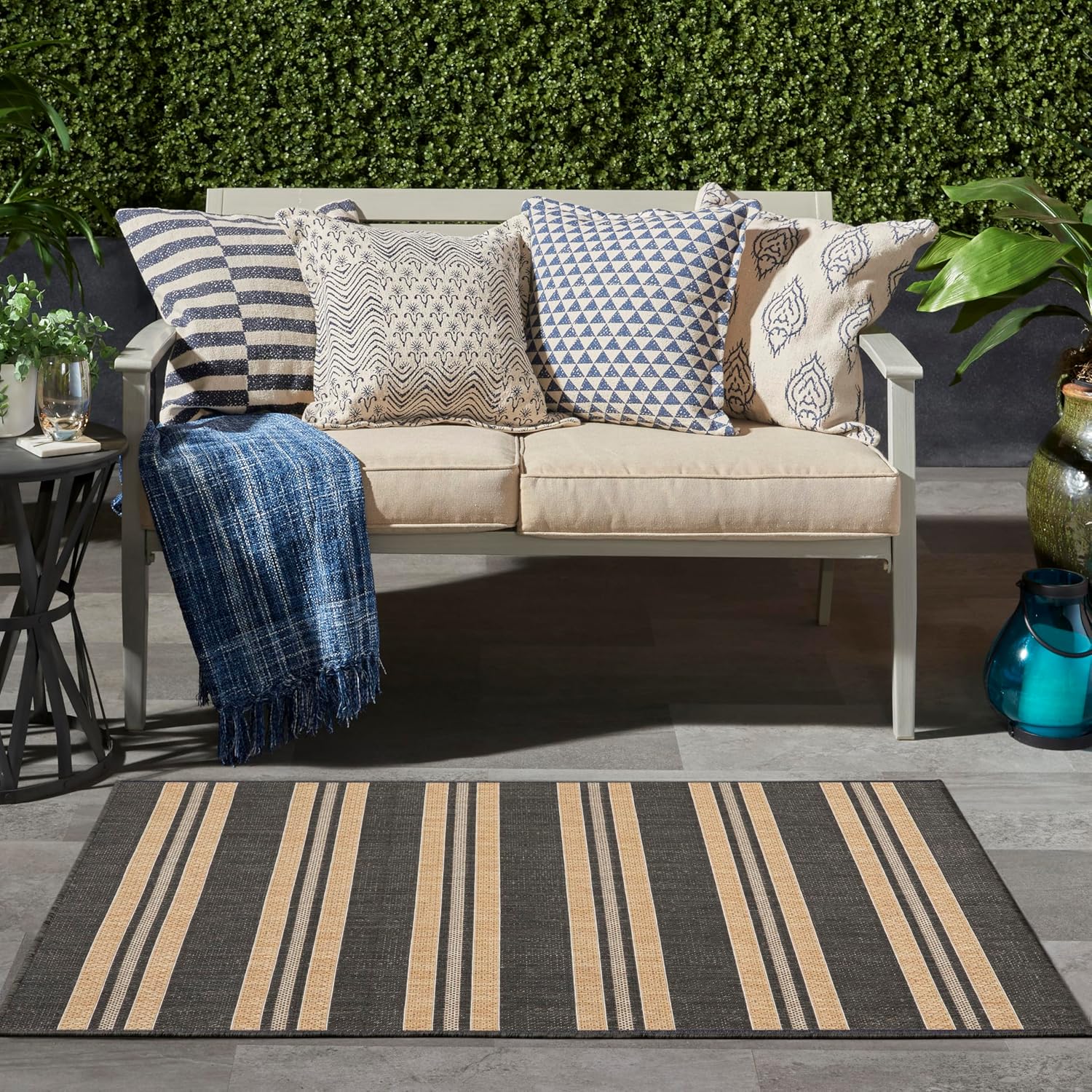 | Product Care Instructions | Immediately spot clean with damp cloth, Rinse with hose, air-dry both sides. To extend the life of your outdoor rug, bring indoors during extreme weather., Vacuum regularly (no beater bar) |