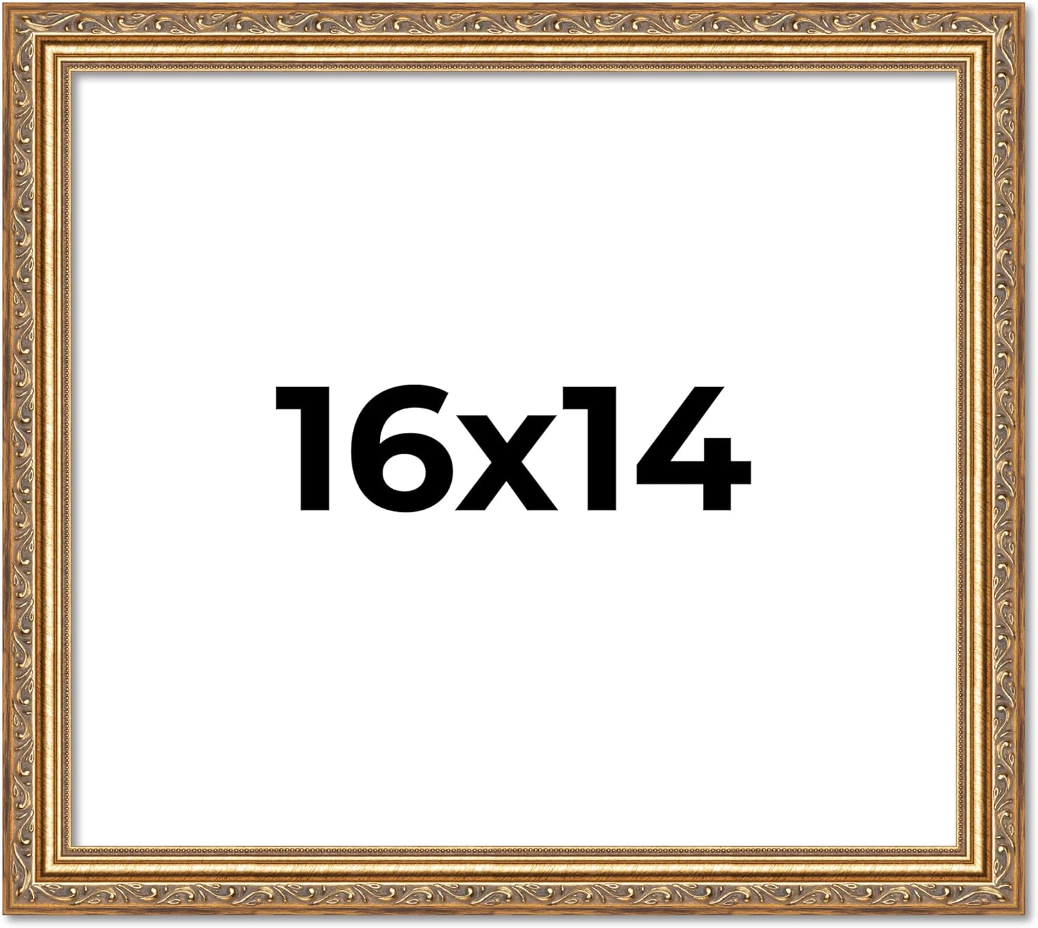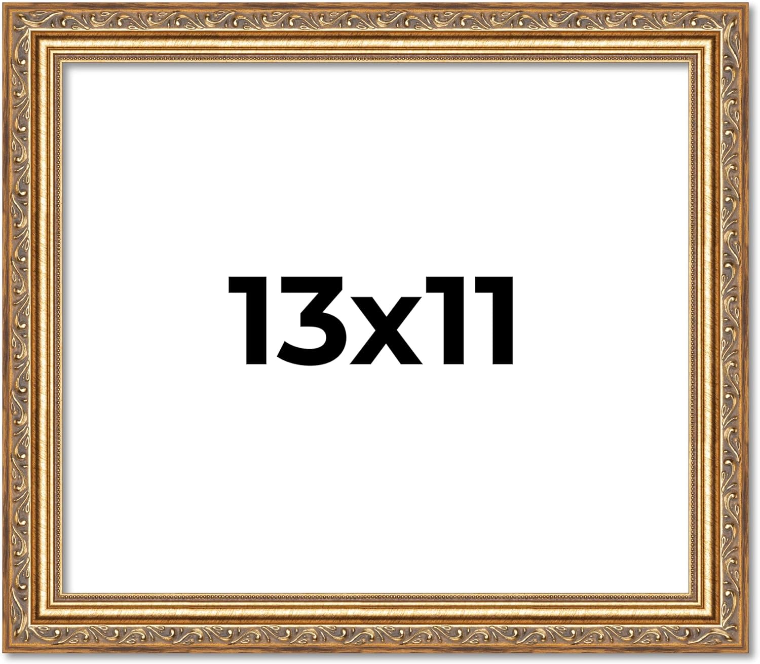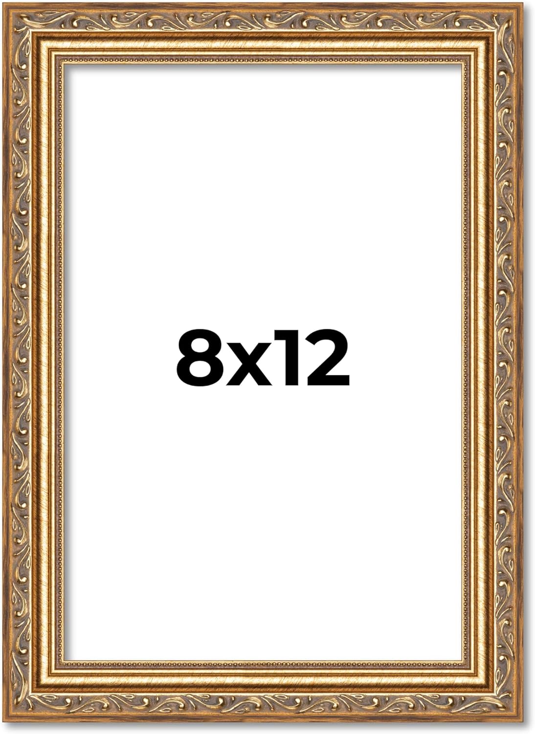 12x12 Traditional Antique Gold Wood Picture Frame - UV Acrylic, Foam Board Backing, & Hanging Hardware Included.. This Wood Picture Frame has been built for images measuring 12x12 Inches.. Overall dimensions 13.25x13.25 Inches.. Moulding Width: 1.25 Inches - Rabbet Depth: 3/8 Inches. UV Resistant Frame Grade Acrylic Sheet & Foam Board Backing Included.. Hanging hardware is included but not installed—easily attach for vertical or horizontal display. Easel Stand Included for Table Top Display.