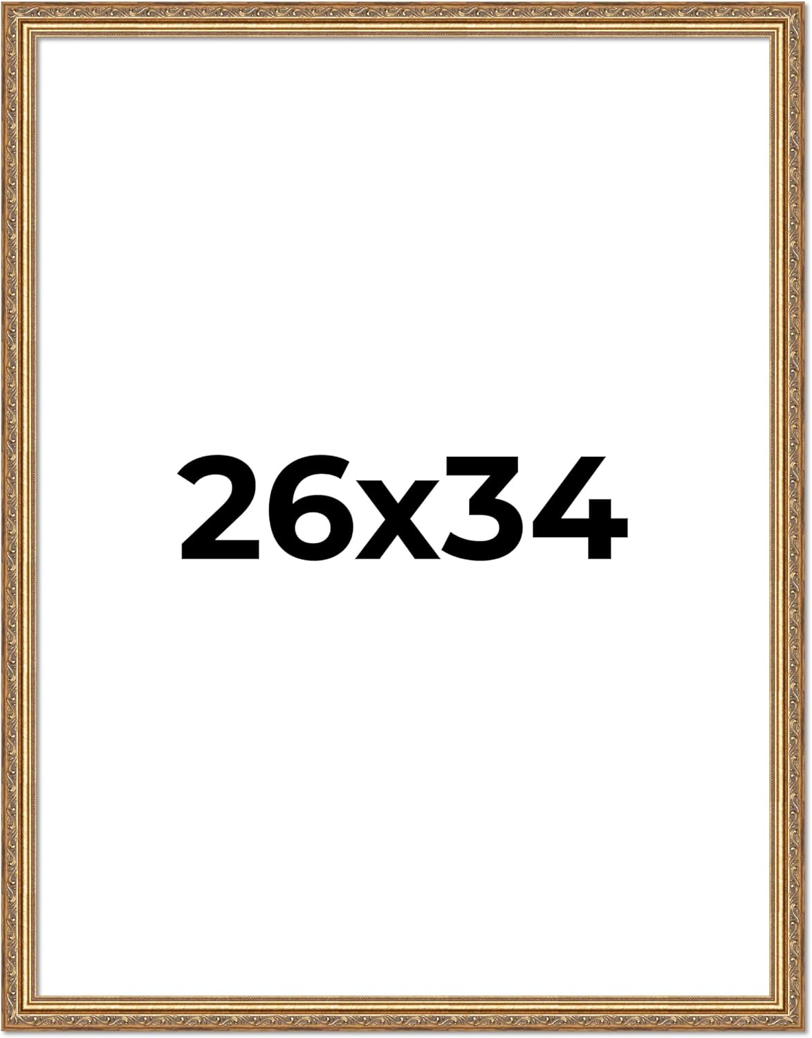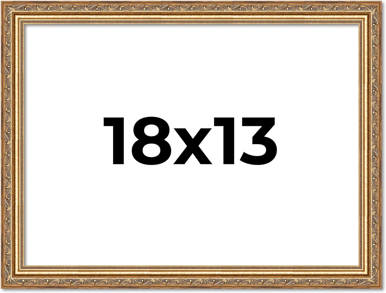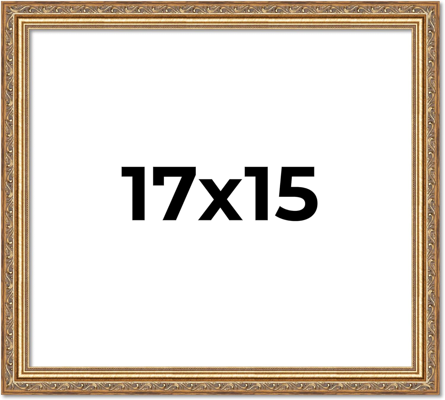 12x12 Traditional Antique Gold Wood Picture Frame - UV Acrylic, Foam Board Backing, & Hanging Hardware Included.. This Wood Picture Frame has been built for images measuring 12x12 Inches.. Overall dimensions 13.25x13.25 Inches.. Moulding Width: 1.25 Inches - Rabbet Depth: 3/8 Inches. UV Resistant Frame Grade Acrylic Sheet & Foam Board Backing Included.. Hanging hardware is included but not installed—easily attach for vertical or horizontal display. Easel Stand Included for Table Top Display.