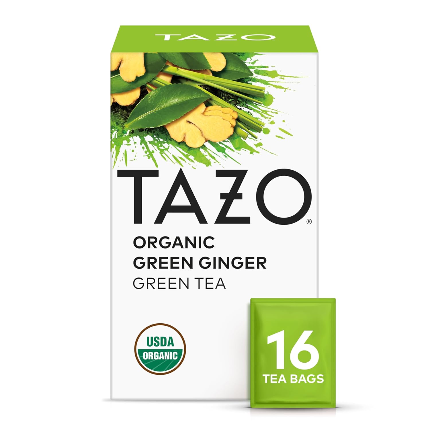 TAZO Green Ginger is made from a robust blend of USDA organic green tea combines ginger root and lemongrass to bring you the tea of your dreams. Our Organic Green Ginger is made with quality ingredients and comes packaged with 16 individual tea bags for your sipping pleasure. Plus it's Kosher, Organic and Non-GMO Project Verified. By the way, brewing's also a cinch: Just bring fresh, filtered water to a boil, carefully pour water over your tea bag, and let it steep for 5 minutes (the longest 5 minutes, we know). Then, you’re good to take that first sip! Go beyond the traditional cup of tea with Tazo Tea Bags.